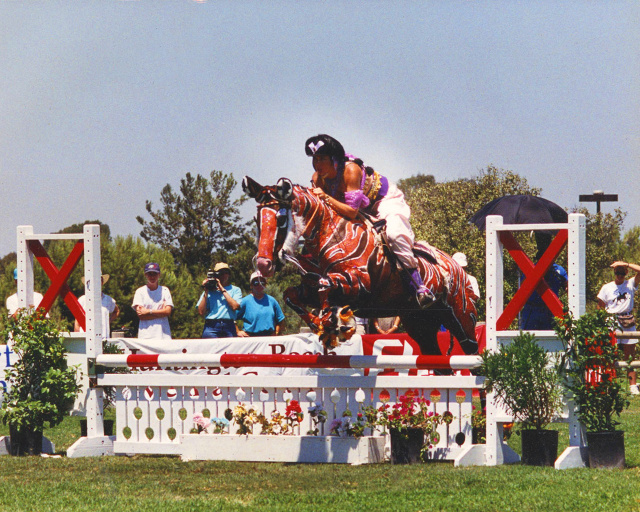 Her youthful journey continued with Gymkana Games, Barrel Racing, Pole Bending, Bareback and Key hole. At 13 she played a stunt rider and Indian in a movie. While living in Turkey for 2 years she galloped race horses on the track, and was trained by an International Jumping Coach, jumping 4-5' high courses. Her German coach would have her do Shoulder-ins and Half Passes between combinations to supple the horse. Her love of Dressage was born at that time in 1968. By 18 she was competing Arabians in all divisions; Halter, Saddle Seat, Hunters, Native Costume, Western Pleasure and Bareback classes.